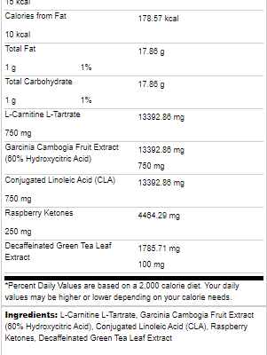 - כל מנת הגשה – טבלית 1 מכילה 1000 מ"ג של טרטרט L-Carnitine יעיל וטהור