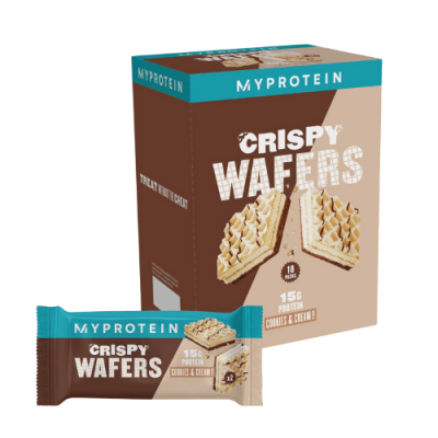 וופל חלבון עשיר בחלבון עם חומרי מילוי ממקורות חלבון של חלב , מי גבינה איזולייט, חלב איזולייט במגוון טעמים שונים.