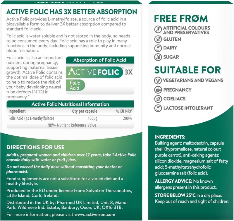 ספיגה טובה יותר – היא מכילה Quarterfolic, מקור ל-L-Methyl Folate, המספקת חומצה פולית פעילה עם ספיגה גבוהה פי 3 יותר מחומצה פולית רגילה.