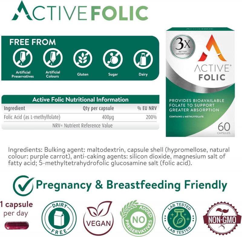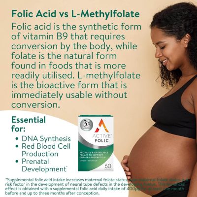 Active Folic מספקת חומצה פולית בצורה טבעית לתמיכה בספיגה גבוהה יותר.