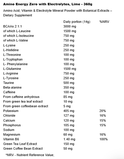 Amino Energy Zero עם אלקטרוליטים – תערובת חומצות אמינו ואנרגיה ללא סוכר
