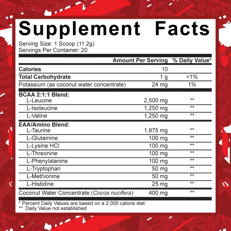 תוסף אמינו עוצמתי מסדרת "Code Red" של 5% Nutrition, שמיועד לתמוך בהתאוששות שריר, לשמור על רקמות קיימות בזמן אימונים אינטנסיביים או תזונה מקצרת קלוריות, תוך עידוד הידרציה—וכן, נטול ממריצים לגמרי.