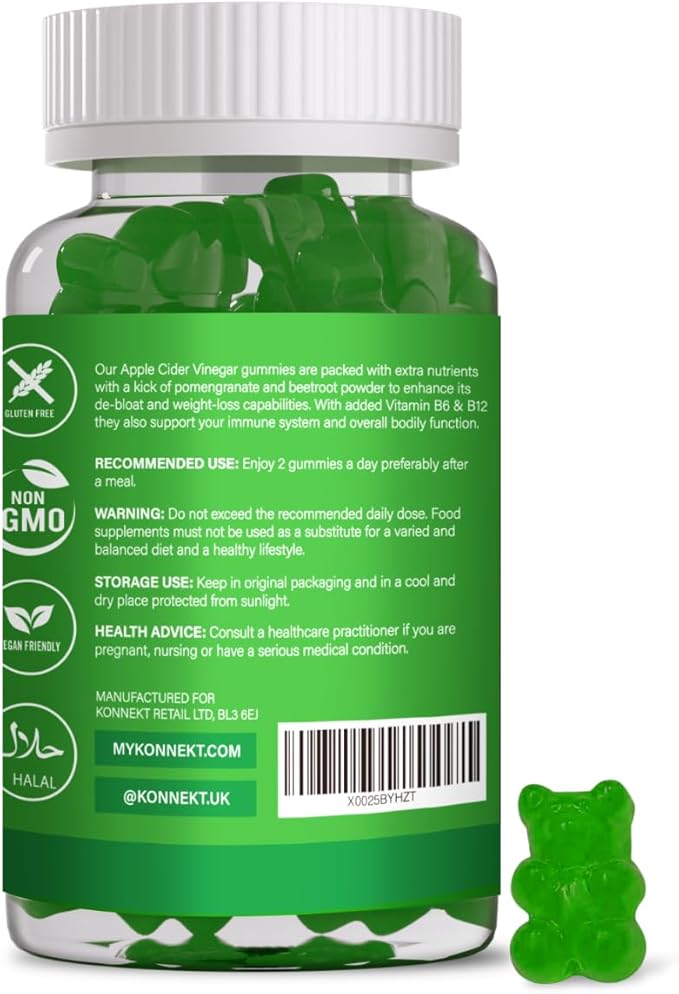 Apple Cider Vinegar Gummies with The Mother 1000mg – 60 Vegan Gummies Apple Flavour AMZ