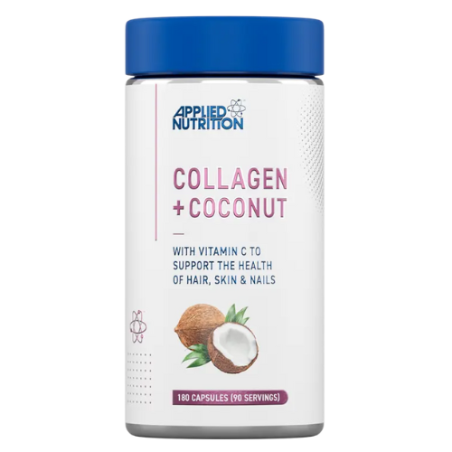 תוסף תזונה מבית Applied Nutrition המכיל שילוב של קולגן ימי הידרוליזי, אבקת שמן קוקוס וויטמין C, המיועד לתמיכה בבריאות העור, השיער והציפורניים וכן בבריאות המפרקים ורקמות החיבור. המוצר מגיע בצורת כמוסות נוחות לנטילה יומית כחלק מאורח חיים בריא.