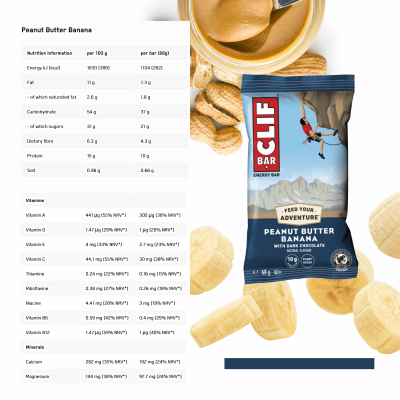 תדלקו את ההרפתקאות שלכם עם קופסת ה-Clif Bar Energy Bar חטיף טעים המכיל את כל הפחמימות, החלבון והסיבים הדרושים כדי לשמור על הביצועים הטובים ביותר.