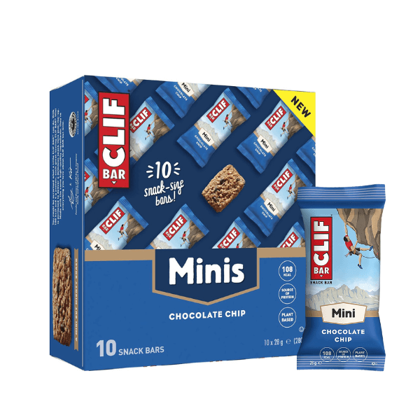 CLIF BAR® Chocolate Chip Minis מביאים את הטעם הקלאסי והאהוב של עוגיית שוקולד צ'יפס טרייה בחטיף טעים, מזין ונוח לנשיאה לכל מקום.