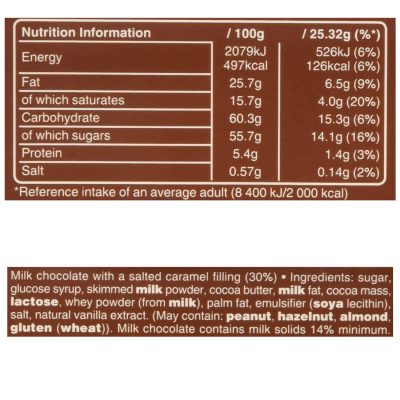 - שוקולד גלקסי חלק וקרמי במילוי קרמל מלוח.