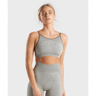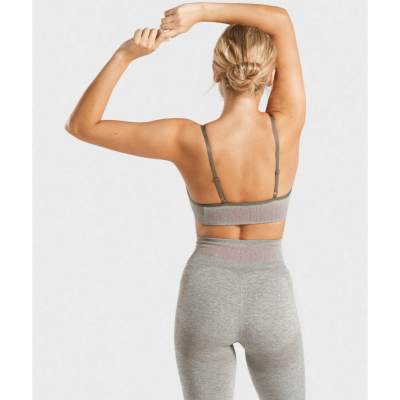 Gym Shark Flex Strappy Sports Bra Khaki Marl/Taupe