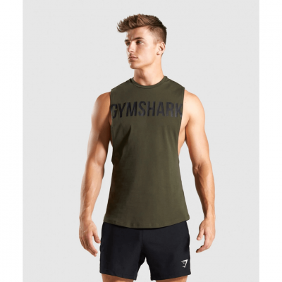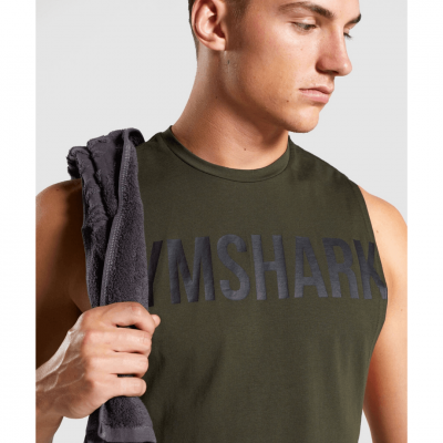גופיית ספורט טנק מקולקציית Graphic מבית Gym Shark בצבע Dark Green