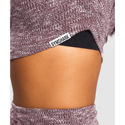 Gym Shark Slounge Cropped Hoodie Berry Red Marl
