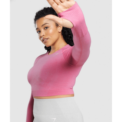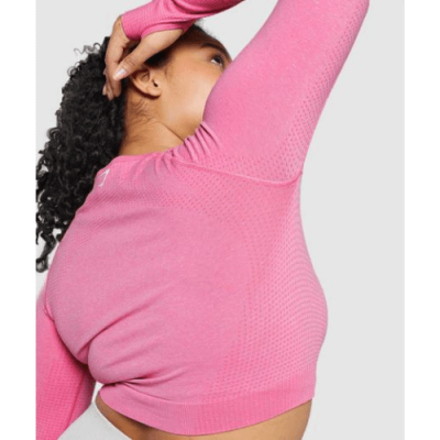 Gym Shark Vital Seamless 2.0 Long Sleeve Crop Top Pink Marl