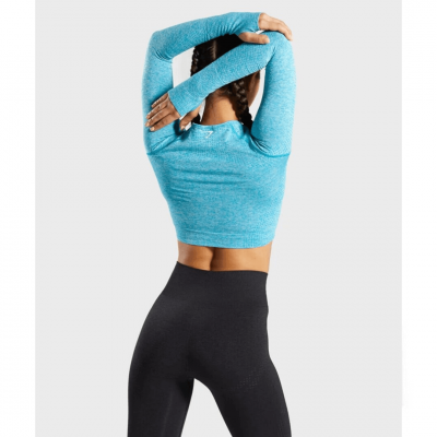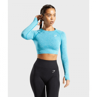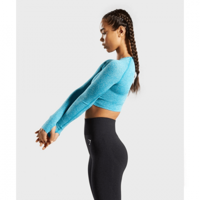 Gym Shark Vital Seamless Long Sleeve Crop Top Blue Marl