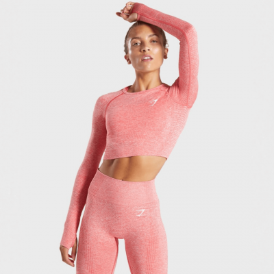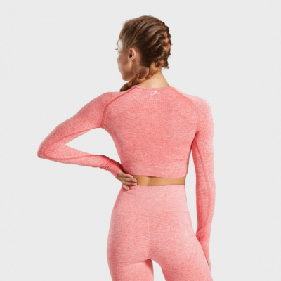 Gym Shark Vital Seamless Long Sleeve Crop Top Coral Marl