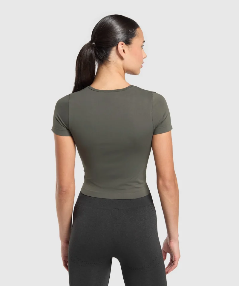 Gymshark Everyday Seamless Tight Fit Crew Neck Tee Strength Green
