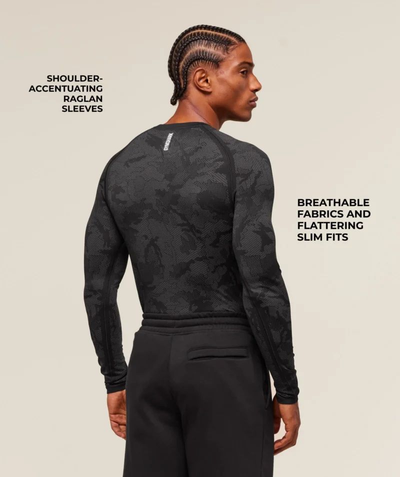 Gymshark Geo Seamless Long Sleeve T-Shirt – שחור / אפור כהה