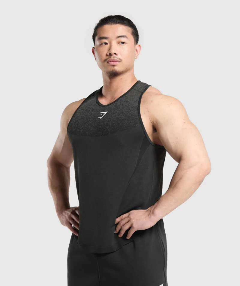גופיית אימון ללא שרוולים, בגזרה צמודה המדגישה חזה, כתפיים וידיים.