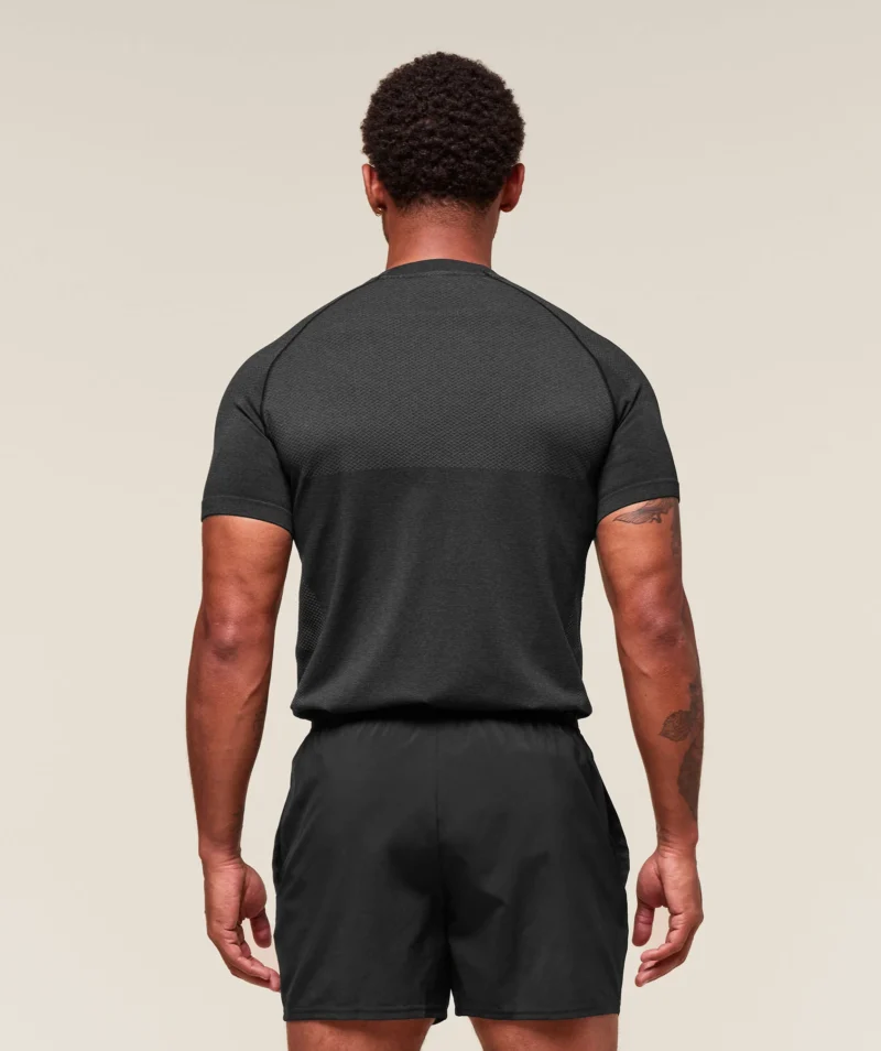 חולצת טי בסגנון Slim Fit (גזרה צמודה), המיועדת להבליט את מבנה הגוף ולהציע תחושת ביצועים—כל זאת בעיצוב נקי ומתוחכם. העיצוב חסר התפרים (Seamless) התורם לקומפורט וביצועים ללא הפרעה.