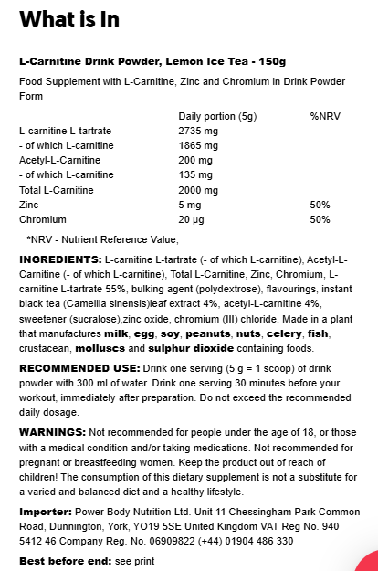 L‑Carnitine Drink Powder – אבקת משקה קרניטין בטעם לימון אייס־טי