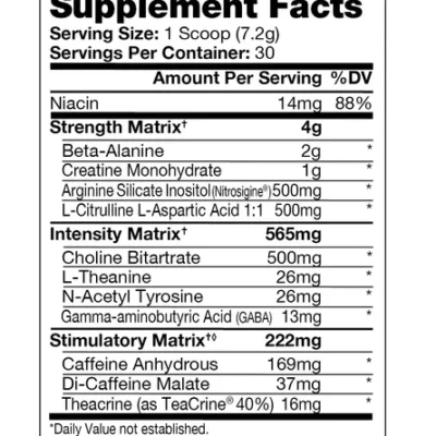 • אנרגיה מקסימלית: קפאין ברמות גבוהות לשיפור רמות האנרגיה והפוקוס במהלך האימון.