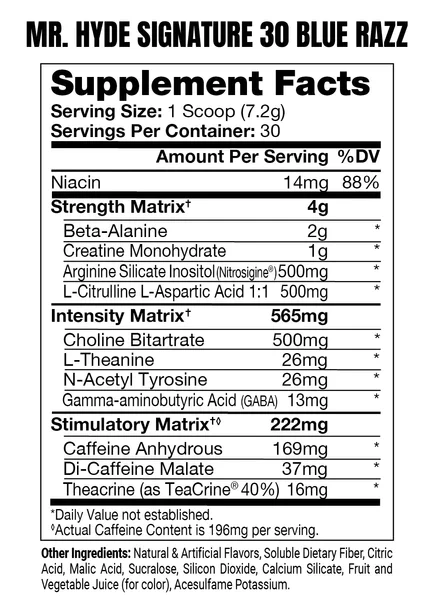 Mr.Hyde Signature ProSupps – תוסף קדם אימון עם קפאין ול-ציטרולין (30 מנות)