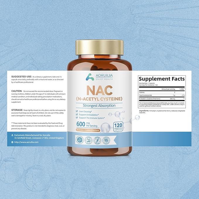 תוסף N-Acetyl-Cysteine (NAC) טהור עם 600 מ"ג לקפסולה, נוסחה בעלת ספיגה גבוהה במיוחד ומסייעת לחיזוק מערכת החיסון, סיוע לתפקוד הכבד, ושיפור בריאות התאים. NAC הוא חומצה אמינית המשמשת כנוגדת חמצון חזקה ומסייעת בניקוי רעלים מהגוף. תוסף אידיאלי לשיפור בריאות מערכת הנשימה, הגנה על הריאות ומאבק בהזדקנות התאים.