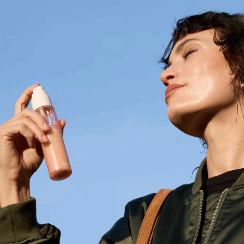 במהלך היום: ניתן לרסס מעל האיפור או על עור יבש כטופ‑אפ להגנה נוספת.