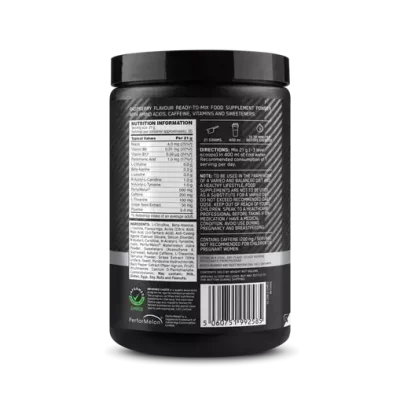 הפורמולה מכילה L-Citrulline, Beta-Alanine ו-200 מ"ג קפאין ממקורות טבעיים – מכיל גם 3 גרם L-Leucine, בנוסף לשילוב של חומצות אמינו וויטמינים כדי לעזור לתמוך באימונים שלך במסלול, במגרש או בחדר הכושר.