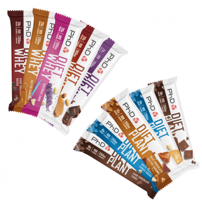 קנה זוג מארזי חטיפי PHD עשירים בחלבון מי גבינה או חלבון טבעוני לבחירתך וקבל מארז מתנה – 36 חטיפי חלבון במחיר משתלם במיוחד!