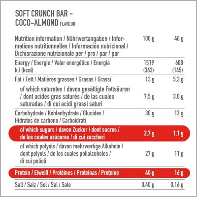 חטיף Premier Protein Soft Crunch משלב שתי שכבות חלבון קרמיות וחלקות עם קראנץ' פריך – עטוף בציפוי דק של שוקולד. פינוק אמיתי עם מקסימום 1.2 גרם סוכר בלבד* ותכולת חלבון גבוהה.