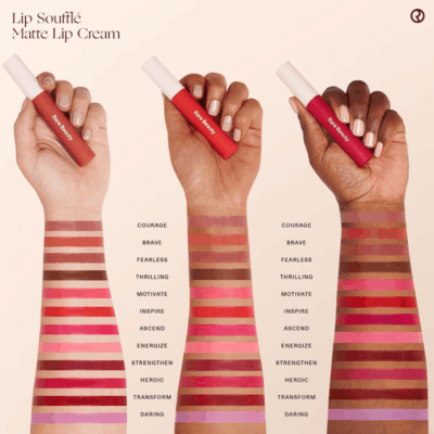 RARE BEAUTY Lip Souffle Matte Lip Cream הוא קרם שפתיים בעל מרקם משי שמספק גימור מאט מושלם. הנוסחה הקלה והאוורירית של הקרם מעניקה צבע אינטנסיבי ועשיר במריחה אחת, תוך שמירה על תחושת נוחות לאורך כל היום. עם סיום מט וחלק, השפתיים ייראו מלאות ומטופחות מבלי להרגיש יובש או כבדות.