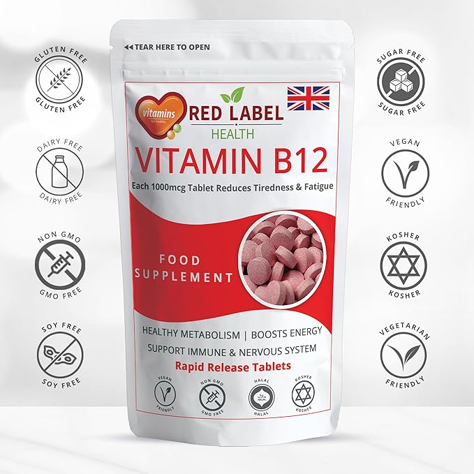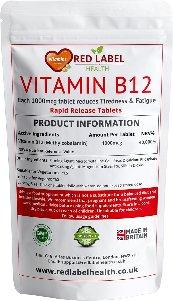 Red Label Health Vitamin B12 1000mcg – Methylcobalamin for Energy & Fatigue, 30 Tablets AMZ