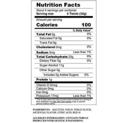 סירופ מלטיטול, קמח חיטה, טעם מלאכותי, חומצת לימון, אדום 40.