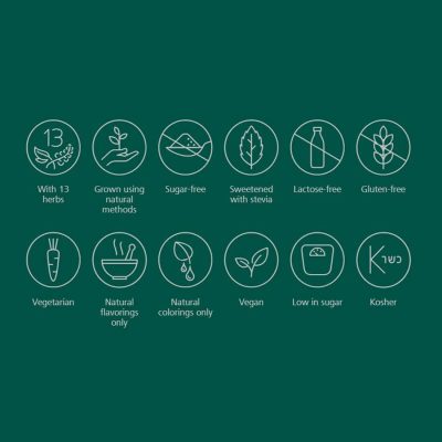 ממתיק (איזומלט), חומצה (חומצת לימון), תרכיז מיץ חמוציות (0.6%), תמצית (0,5%) מתערובת העשבים של ריקולה, תרכיז שוקולד שחור, ממתיק (סטיבול גליקוזיד), בטעם חמוציות טבעי עם חומרי טעם טבעיים אחרים, מנטול , חומרי טעם וריח טבעיים.
