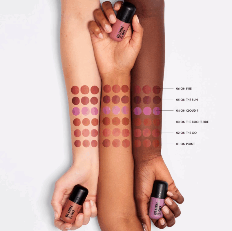 "Blush & Go" הוא בלשם נוזלי בעל מרקם עדין ונעים, עם פיגמנט בולט וגימור מאט טבעי. מגיע עם אפליקטור ספוג נוח לשימוש – "SHAKE, DOT & POP!" – המאפשר טפטוף מדויק, עיצוב פשוט ומראה מקסים ביום-יום.