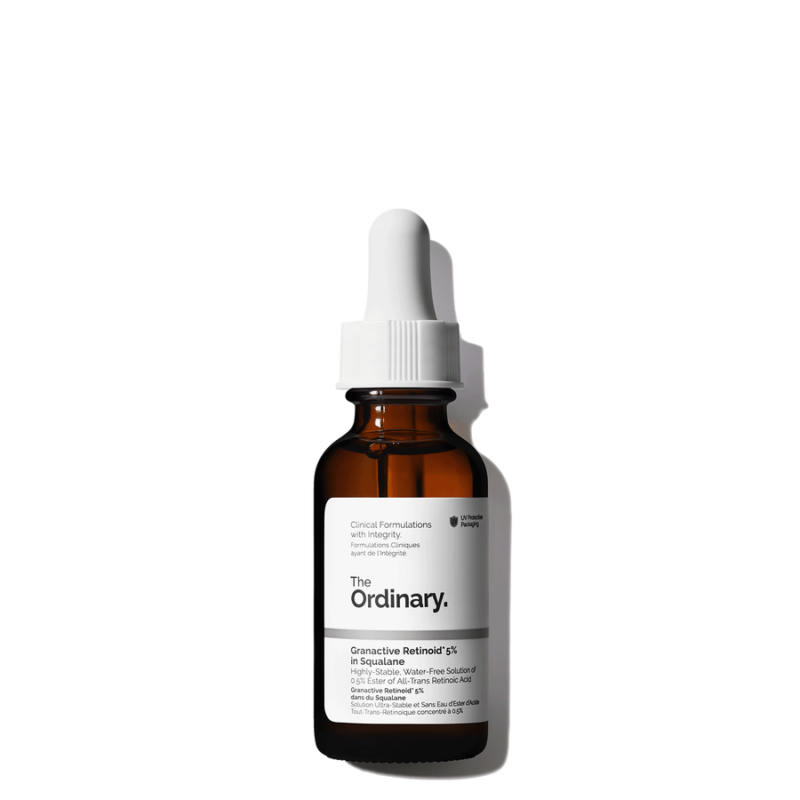 ה-Granactive Retinoid 5% in Squalane של The Ordinary הוא פתרון רטינואידי מתקדם המפחית קמטים, קווים דקים, ומטפל במרקם עור לא אחיד. הפורמולה מכילה רטינואיד בעל פעולה עדינה יותר מאשר רטינול, אך עדיין מספקת תוצאות מרשימות. מדובר במרכיב חזק שמסייע בשיפור מראה עור הפנים, הפחתת כתמים והבהרת עורות פגועים.