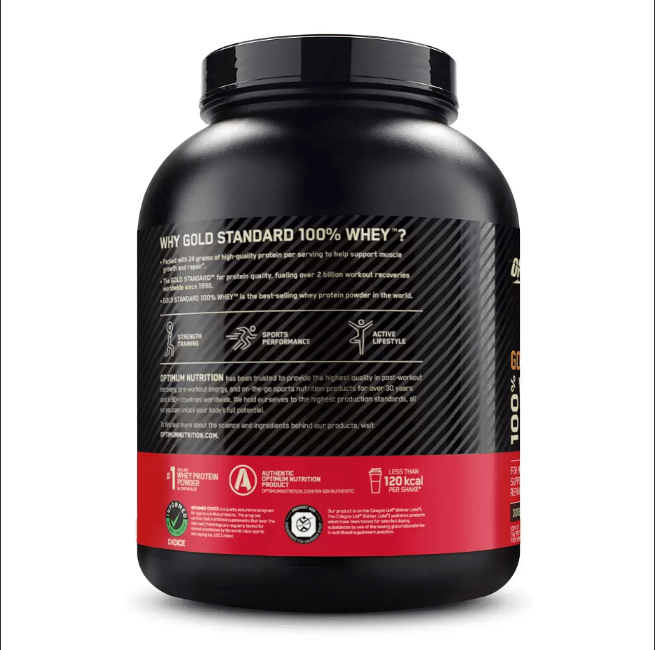 כל מנה טעימה של Gold Standard 100% Whey של ON מכילה 24 גרם חלבון מי גבינה פרימיום לתמיכה בצמיחת שרירים ו-5.5 גרם BCAA טבעיים.