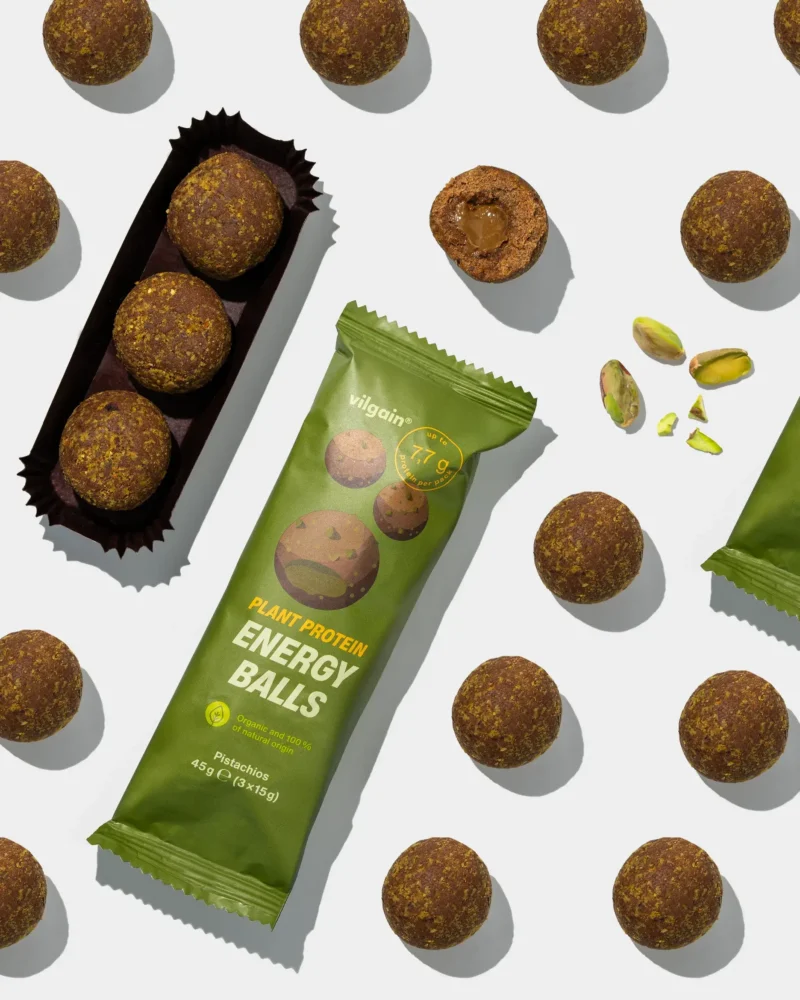 Vilgain Organic Plant Protein Energy Balls – כדורי אנרגיה אורגניים מהצומח עם חלבון, פיסטוק טבעי ואנרגיה נקייה
