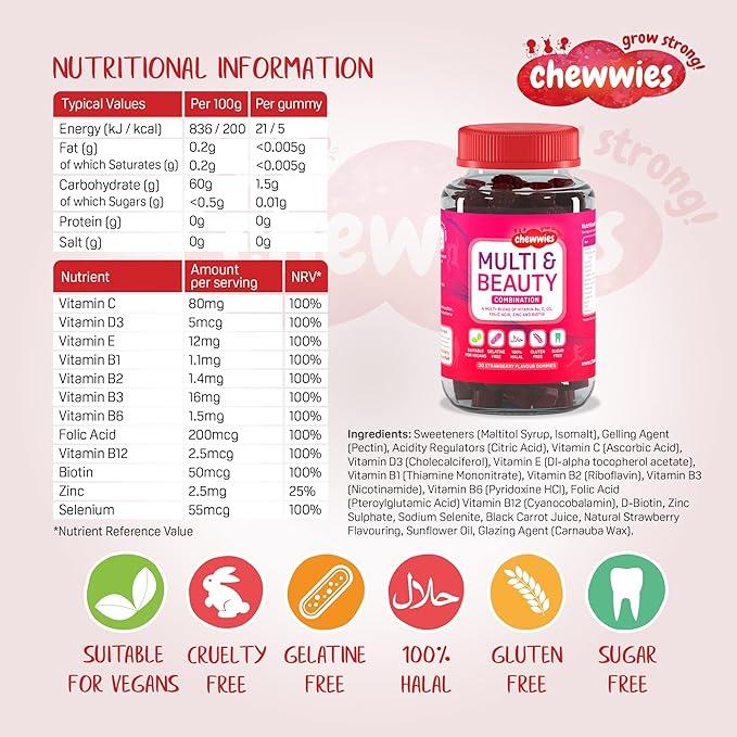 הסוכריות גומי מולטי-ויטמינים וה-minerals לנשים הן פתרון נהדר למי שרוצה לשמור על בריאות אופטימלית בקלות ובטעימות. כל סוכריית גומי מכילה את הוויטמינים והמינרלים החיוניים לנשים, במיוחד לתמיכה במערכת החיסון, באנרגיה ובבריאות העור והשיער. כל בקבוק מכיל 60 סוכריות גומי בטעמים מעורבים, שיכולות לשדרג את השגרה הבריאותית שלך.